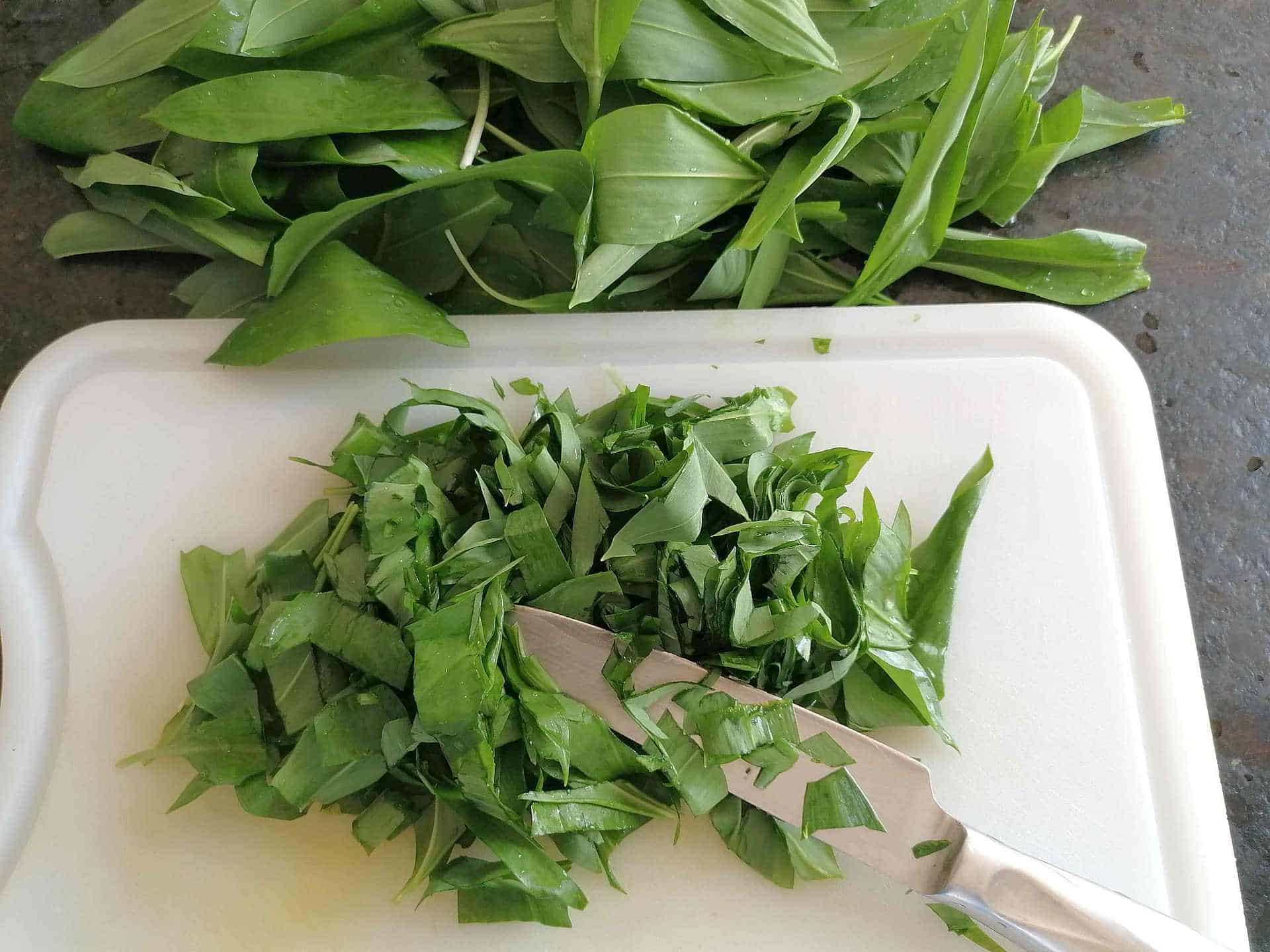 Bärlauch gut waschen, abtropfen lassen und grob schneiden.
